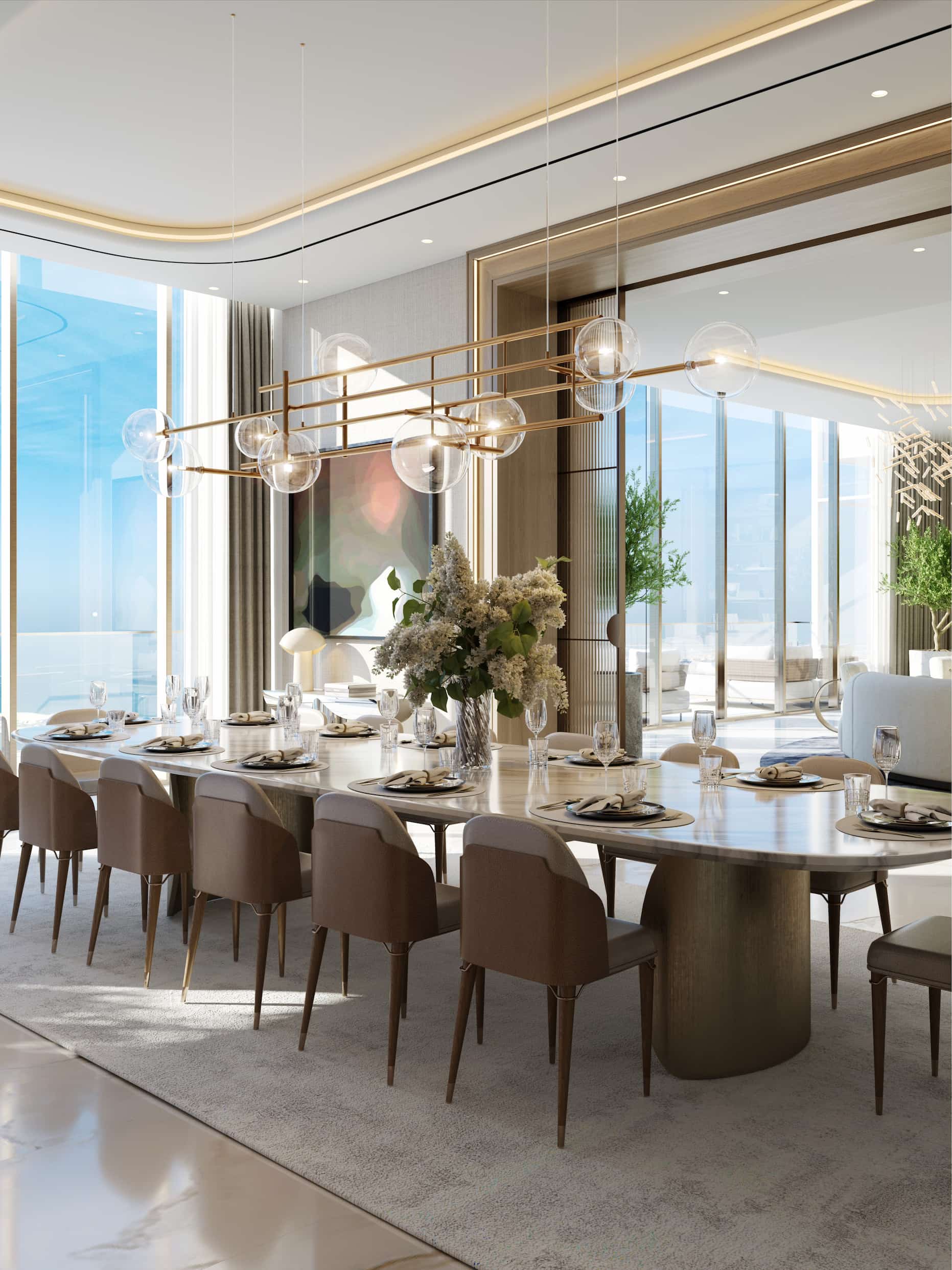 No Sobha SeaHaven, a vida tem outro ritmo. A luz do entardecer toca os móveis com suavidade, o silêncio do alto contrasta com a vibração da cidade ao fundo, e o aroma do jantar preparado na sua cozinha gourmet mistura-se com a brisa salgada do mar.